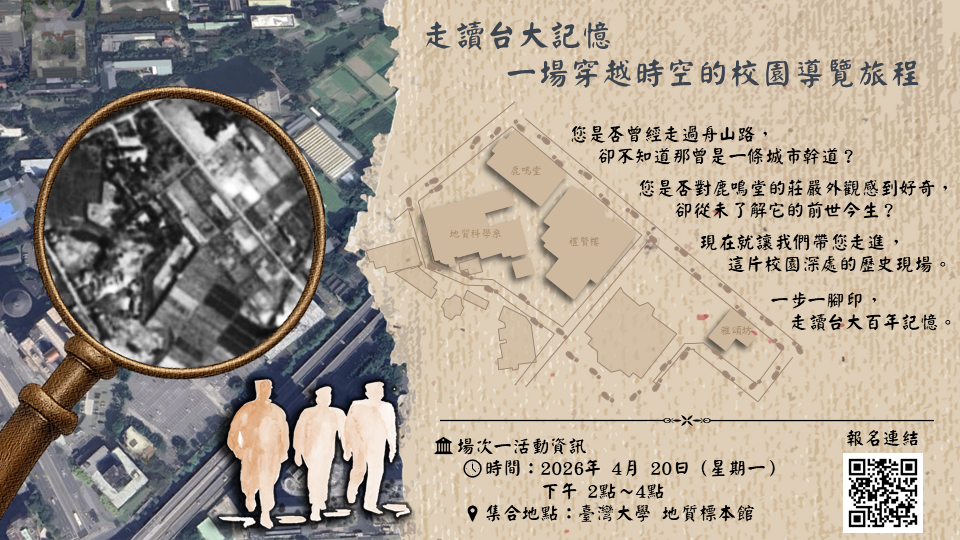 《臺大葛萊美行動 115》04/20(一)、05/04(一) 走讀活動:地質標本館的左鄰右舍